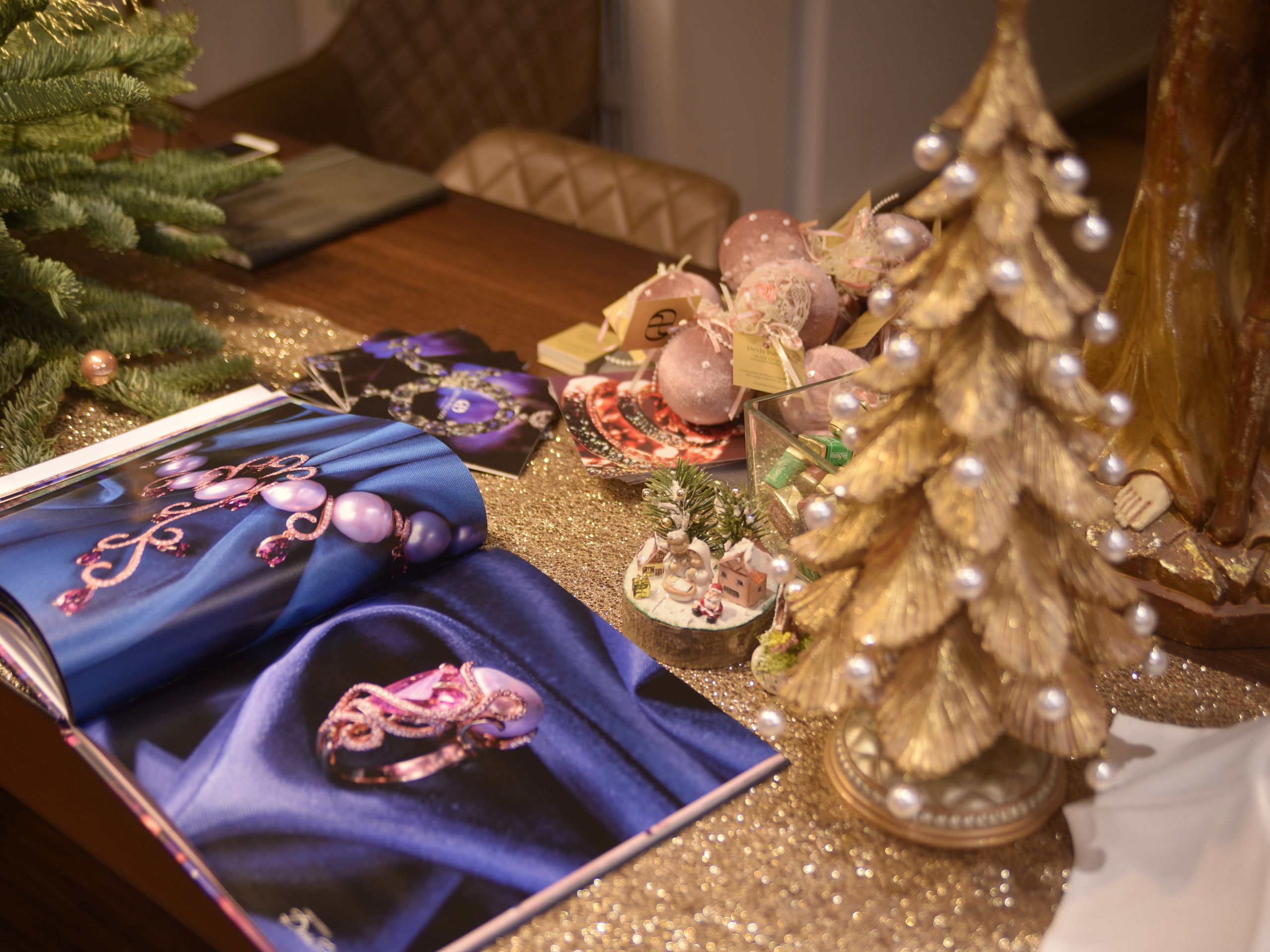 In questa atmosfera natalizia sospesa tra luci calde e verde rigoglioso, l’abbinamento tra i gioielli di Devis Palazzi esposti e i fiori diventa il vero filo conduttore dell’evento. La serra, già di per sé luogo di vita e bellezza naturale, si trasforma in una scenografia raffinata dove il design incontra la natura in un dialogo armonioso.