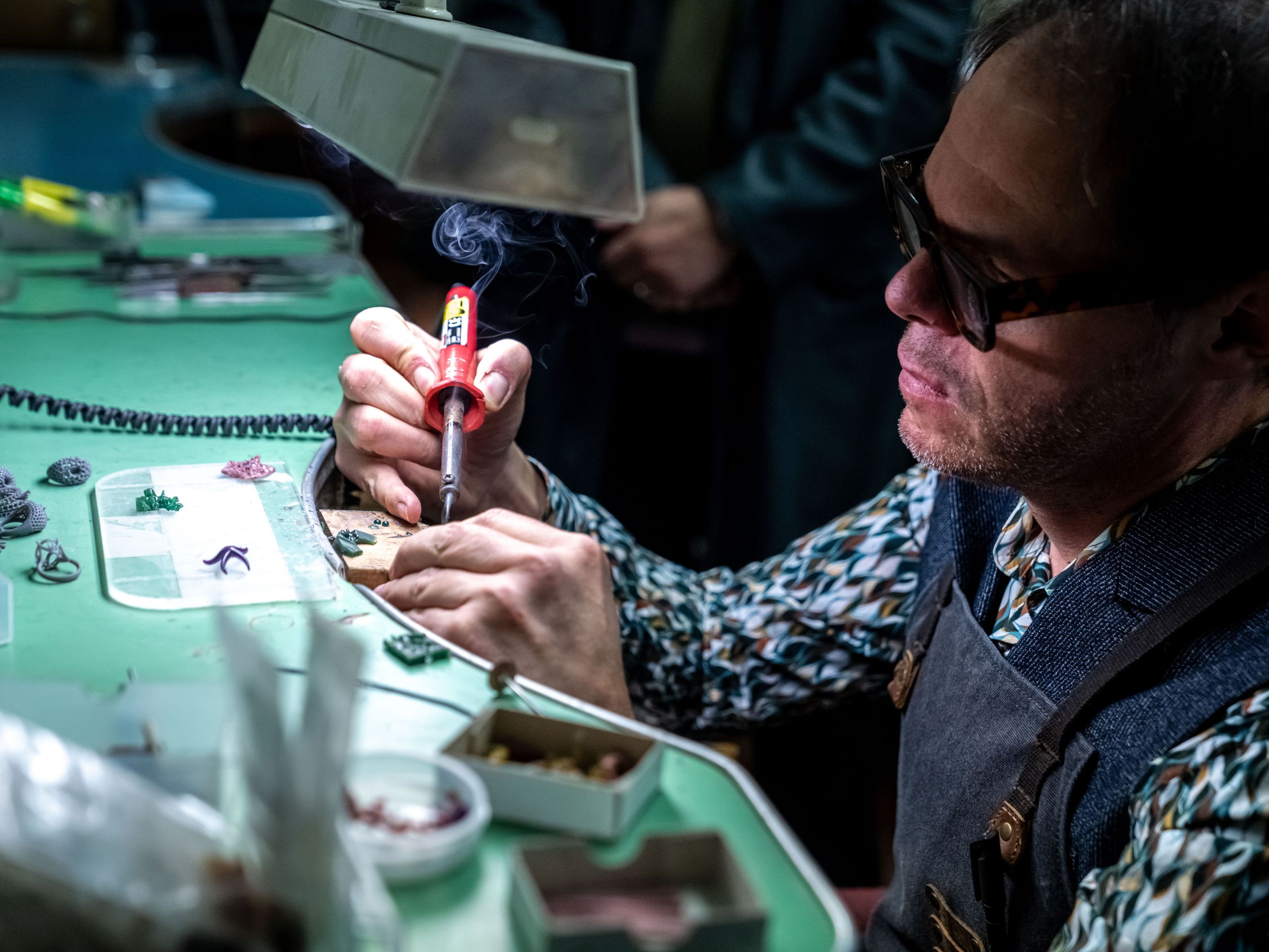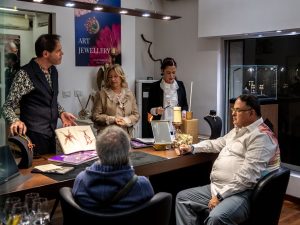Nel cuore del laboratorio, l’artista orafo Devis Palazzi guida i presenti attraverso ogni fase del processo creativo, raccontando la nascita di un gioiello: dall’ispirazione iniziale alla modellazione, fino alla realizzazione finale.