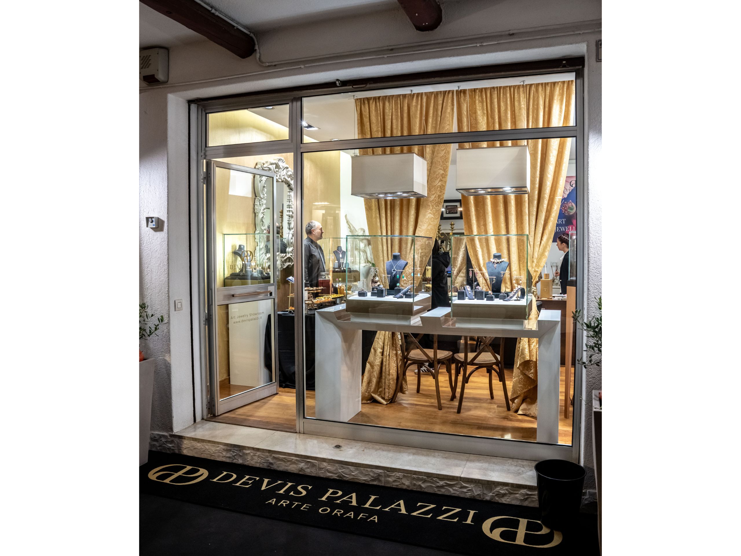 Durante la creazione, gli ospiti potranno ammirare i gioielli di Devis esposti come vere opere d’arte e gustare un aperitivo, respirando l’eccellenza artigianale Made in Italy dell’artista.