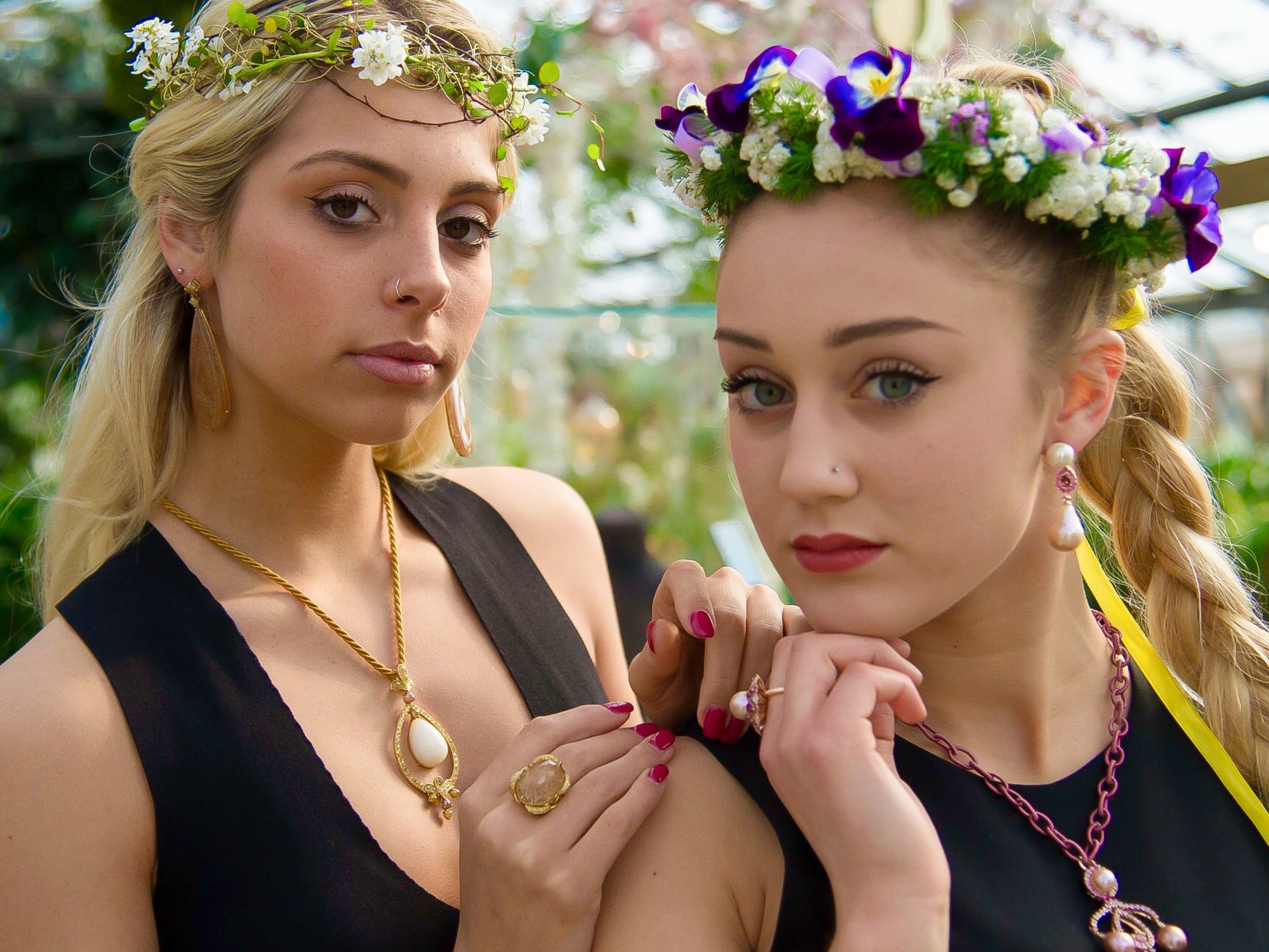Questo abbinamento racconta una storia: quella di una bellezza che nasce dall’incontro tra ciò che cresce spontaneamente e ciò che viene creato con cura e maestria. I fiori diventano cornice viva per i gioielli, e i gioielli, a loro volta, sembrano celebrare la stessa armonia e perfezione che si trova in natura.
